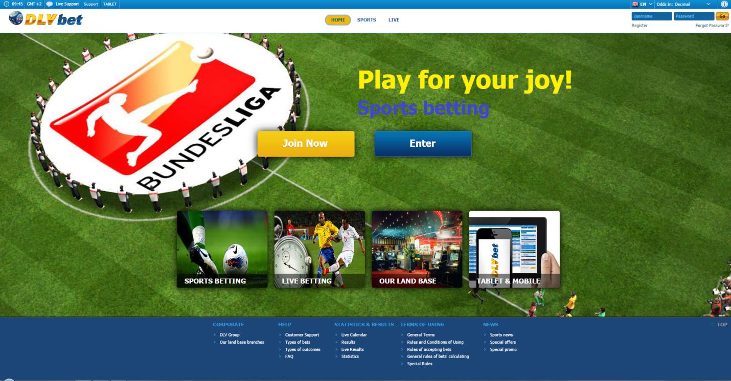 Para ampliar su campo de actividad, DLV ha creado www.dlvbet.lv, un sitio web de apuestas online que ofrece la posibilidad de apostar 24/7 a cuotas proporcionadas por las mejores casas de apuestas. La apuesta es un pacto monetario celebrado por el cliente a favor de un evento cuyo resultado no se conoce. La cuota es una cuantía determinada por una casa de apuestas para un evento, que se multiplica por el monto de apuesta al calcular el monto de la ganancia.
