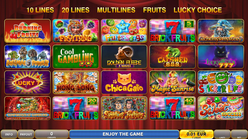 - Opción de "Lucky Choice" - ofrece (destaca) para el jugador un juego seleccionado al azar;