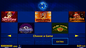DIAMOND GAMES Ultra es un programa multijuego de 25 juegos con 5, 10 y 20 líneas de pago y pago en todas direcciones.